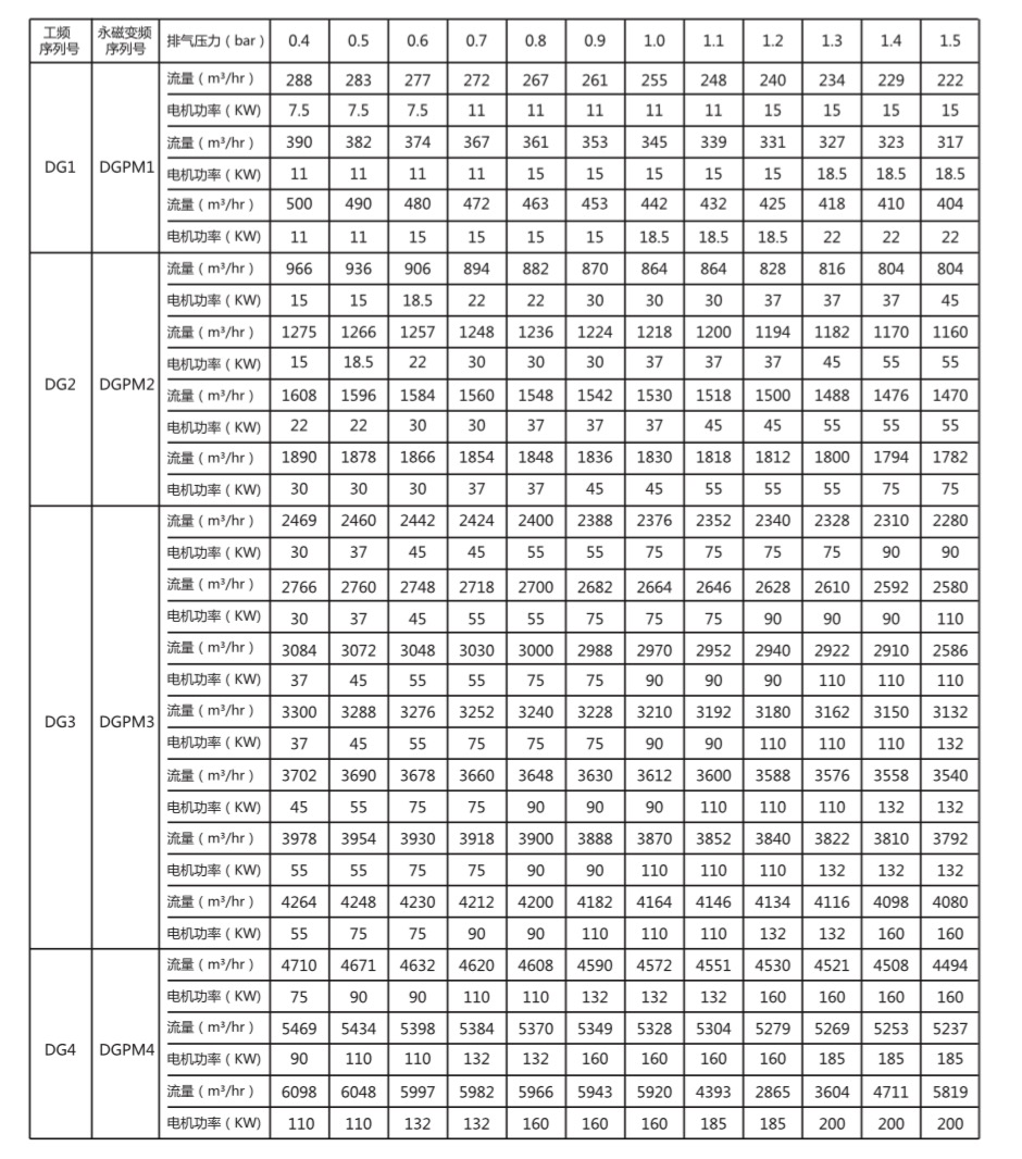 無(wú)油螺桿鼓風(fēng)機(jī)技術(shù)參數(shù)表