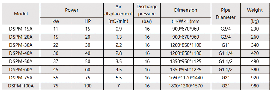 Technical parameters of Laser cutting combined PM motor VSD screw air compressor